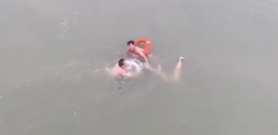 男孩坠桥落水,母亲情急跳下双双溺水,好心人救起两人后虚脱